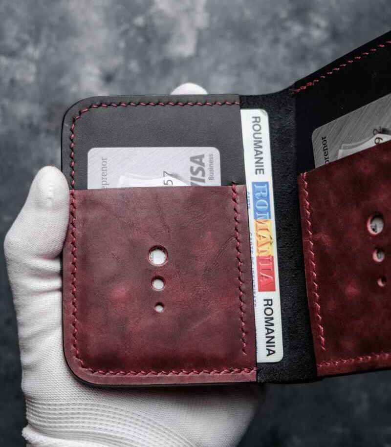 - portofel piele naturala pentru buletin din piele naturala realizat in intregime manual, dimensiuni 9.5x 12 cm(inchis) si 18cm deschis; , design minimalist;
