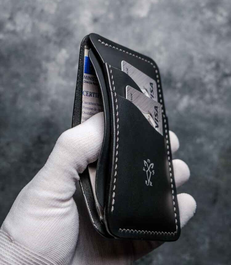 •  Portofel slim din piele naturala realizat in intregime manual, dimensiuni 13.5 x 9 cm , design minimalist;