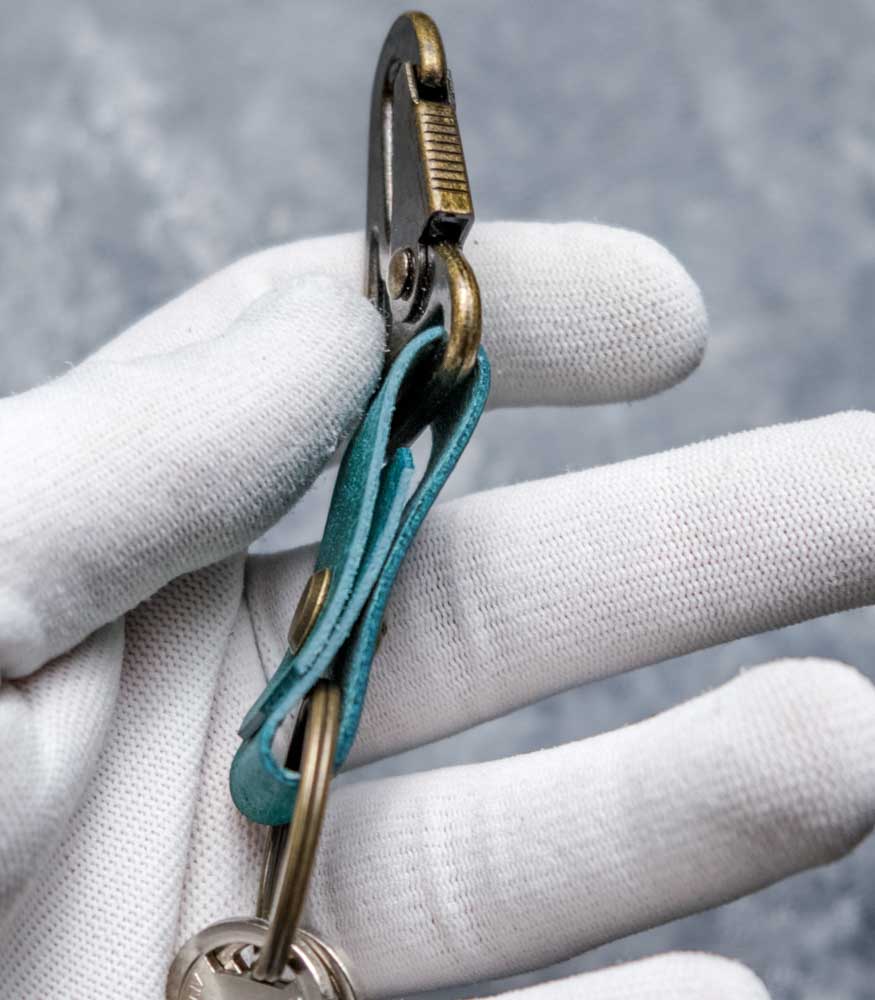 Breloc din piele naturală cu carabină – Turcoaz
